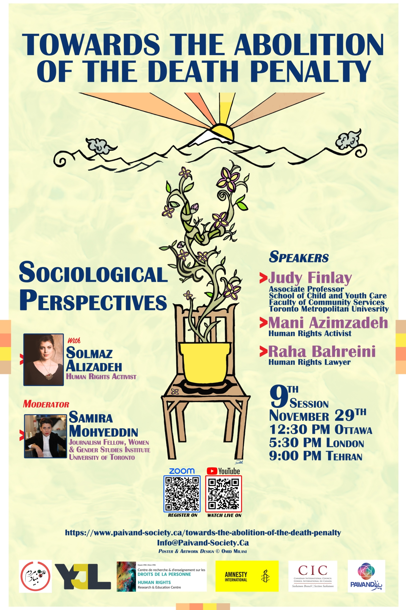 Please join us on Saturday, November 29, 9:30 PDT, 10:30 CST, 12:30 EDT,1:30 ADT for the ninth webinar in this ongoing series on the abolition of the death penalty. This series is sponsored by Amnesty International Canada, Carleton University’s Youth & Justice Lab, The Human Rights Research and Education Centre at the University of Ottawa, The Canadian International Council (Saskatchewan Branch), The Mardom Foundation, The Paivand Society and the campaign United Against Executions in Iran.