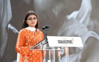 NEW YORK, NY - SEPTEMBER 20: Human rights activist Gulalai Ismail speaks speaks at Goalkeepers 2017, at Jazz at Lincoln Center on September 20, 2017 in New York City. Goalkeepers is organized by the Bill & Melinda Gates Foundation to highlight progress against global poverty and disease, showcase solutions to help advance the Sustainable Development Goals (or Global Goals) and foster bold leadership to help accelerate the path to a more prosperous, healthy and just future. (Photo by Jamie McCarthy/Getty Images for Bill & Melinda Gates Foundation)
